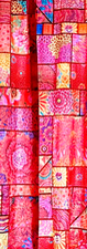 Subsequently, I discovered a passion for working in this way myself, taking classes and learning from many of the talented artists I got to know. I am fascinated by colour and particularly enjoy using painting, printing and free motion sewing techniques that allow the colours in the medium employed to take on a life of its own in an unpredictable and organic way. I delight in the tactile experience of working with textiles, fusing bright colours, interesting textures and unusual combinations of pattern to create art in many forms including colourful quilts, collages, wallhangings, soft furnishings, bags and unique, wearable pieces of art in inclusive sizes.